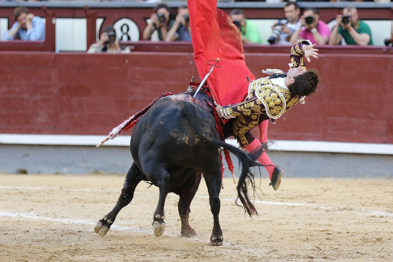 Herida por asta de toro en 1/3 medio cara interna del muslo derecho, con rotura de vena safena y femoral y contunde arteria femoral y nervio crural, con asusencia de pulso en arteria pedia, contornea fémur y alcanza cara externa del muslo. Es intervenido quirúrgicamente en la enfermeria de la plaza de toros de Las Ventas. Pronostico: Muy grave. Firmado, Dr Garcia Padros.