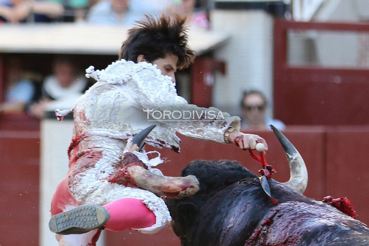 Luxación posterior de codo izquierdo. Contusiones múltiples. Se reduce bajo anestesia y se traslada al Hospital San Francisco de Asís. Pronóstico reservado que le impide continuar la lidia.